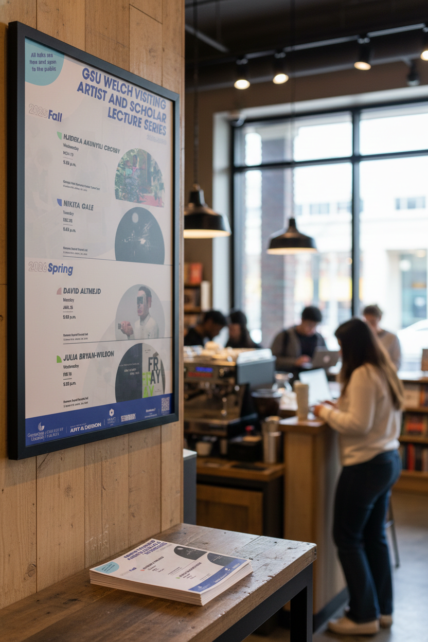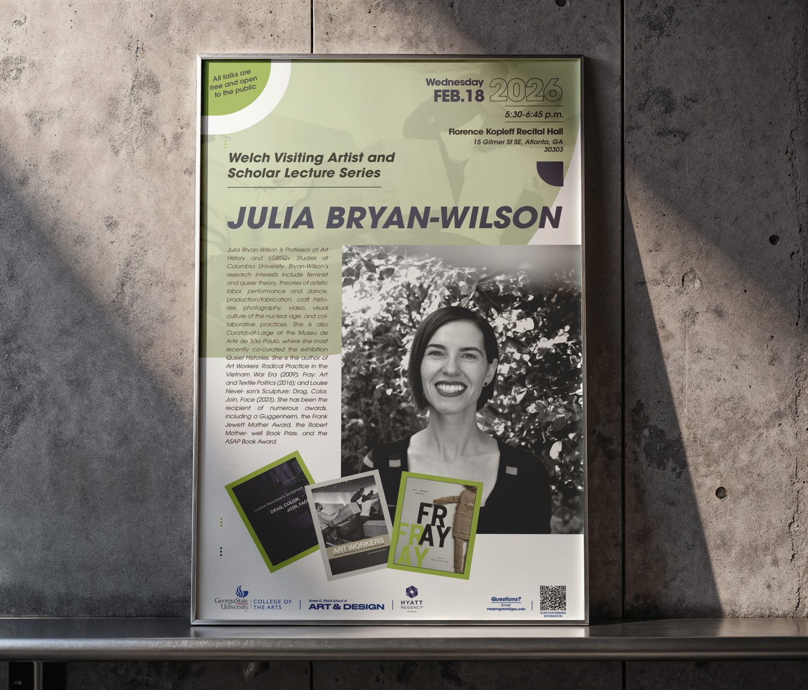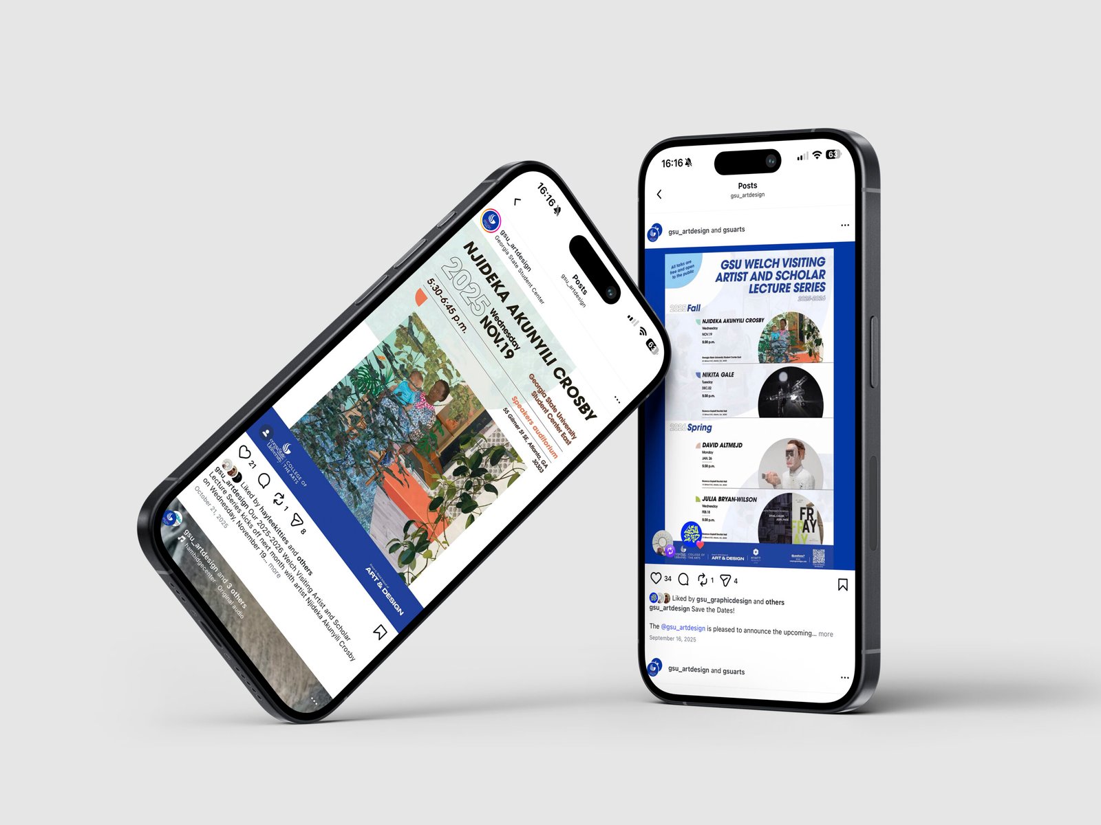 The final deliverables include one overview poster and individual posters for each artist, exported in both print-ready and Instagram formats. The series can be viewed on the GSU Art & Design Instagram account.