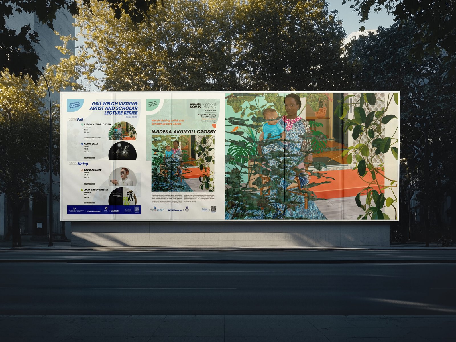 I designed a complete poster series for the Welch Visiting Artist and Scholar Lecture Series 2025–2026. For each speaker, I built a distinct color palette derived from their work, capturing the tone of their practice while maintaining a cohesive system across the entire series.